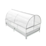 Во-вторых, довольно сложно установить листы поликорбоната в стыковочные планки, они очень жесткие и неохотно принимают форму купола. Почему было бы не предусмотреть обшивку крышек цельным листом поликорбоната, думается, что жёсткость бы не пострадала.